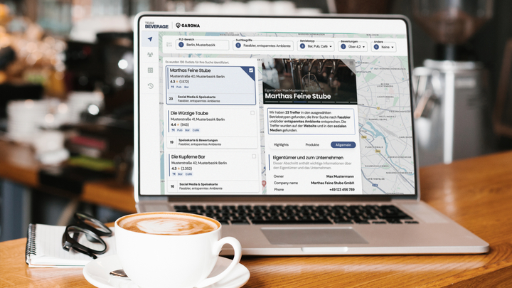 Darüber hinaus sollen sich Marktdaten von Team Beverage mit digitalen Gastro-Kennzahlen verbinden lassen, um daraus fundierte Erkenntnisse zu Zielgruppenverhalten, Sortimentsrelevanz und Standortpotenzialen abzuleiten. Ergänzt werden die Analysen durch automatisiert geprüfte und angereicherte Objektstammdaten – inklusive Kontaktdaten, Öffnungszeiten, Bewertungsprofilen und digitaler Sichtbarkeit.